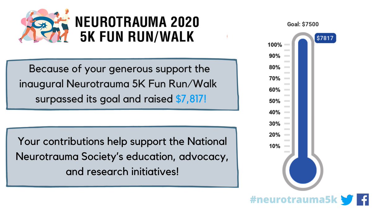 Thank-you to everyone who participated and generously donated to the inaugural #neurotrauma5kFun Run/Walk! With your support it was a success! We SURPASSED our goal and raised $7,817. Your contributions will help support the NNS's advocacy, education, and research initiatives!